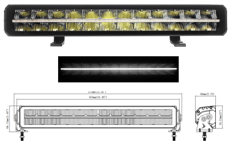 Scan Lumen bliz 22″ Led Bar har følgende funktioner: DRL, combo (fjernlys), LED strip.