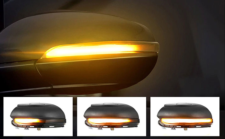 Spejlblinklys med dynamisk LED til VW Golf 6 og VW Touran 1T modeller – her skifter man den inderste spejlet – udover at de er dynamisk, så bliver lyset meget kraftigere da de originale kun har få dioder siddende i enderne – her lyser hele blinklyset og giver et helt andet lysbillede.